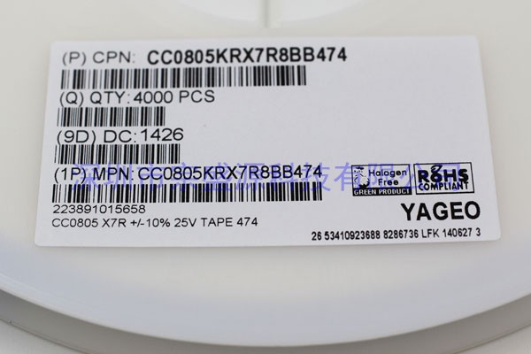 產品名稱:國巨陶瓷電容 0805 25V 0.47UF CC0805KRX7R8BB474