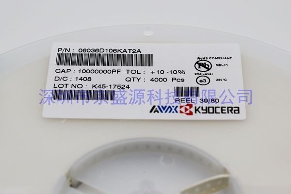 產品名稱:AVX陶瓷電容 0603 6.3V 10UF 06036D106KAT2A