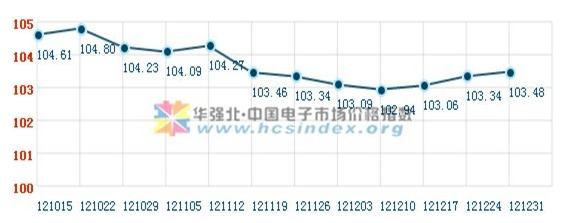 本期電子元器件價格指數報點103.48點,上漲0.14點,漲幅0.14%。電子元件價格指數強勢盡顯,漲幅擴大至3.28%,細分品類中電容器和電阻器分別上漲4.75%和0.91%;電感器和晶體振蕩器則下跌,跌幅分別是0.01%和0.36%。