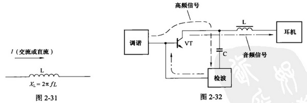 A、分頻。電感器可以用于區分高、低頻信號。由于高頻阻流圈L對高頻電感流感抗很大而對音頻電流感抗很小,晶體管VT集電極輸出的高頻信號只能通過C進入檢波電路。檢波后的音頻信號再經VT放大后則可以通過L到達耳機。