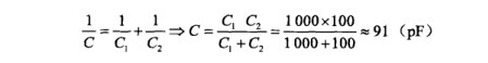 電容器串聯后總容量減小,總容量比容量最小電容器的容量還小。電容器串聯后總容量的計算規律是:總容量的倒數等于各種電容器容量倒數之和,這與電阻器的并聯計算相同,以圖3-61(a)所示電路為例,電容器串聯后的總容量計算公式是: